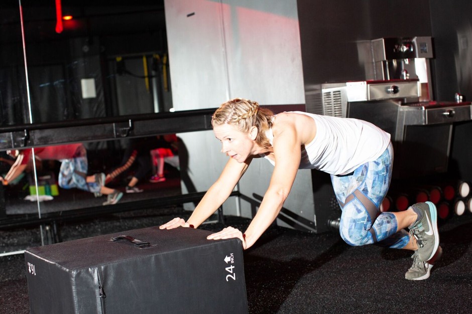 After that, the 10 or 12 of us in my group trudged across Shaw to our next stop on New Hampshire and 11th, right across from a community playground and skate park. At Cut Seven, we started by running circuits in a gym with black matte walls and red lighting. We spent most of the class doing various types of squats in groups, while our instructor—a woman with thighs like marble obelisks—barked encouragingly. Towards the end, we were made to push a large, deceptively heavy cube back and forth across the floor, in a Sisyphean relay race that seemed, to me, an endless hell.