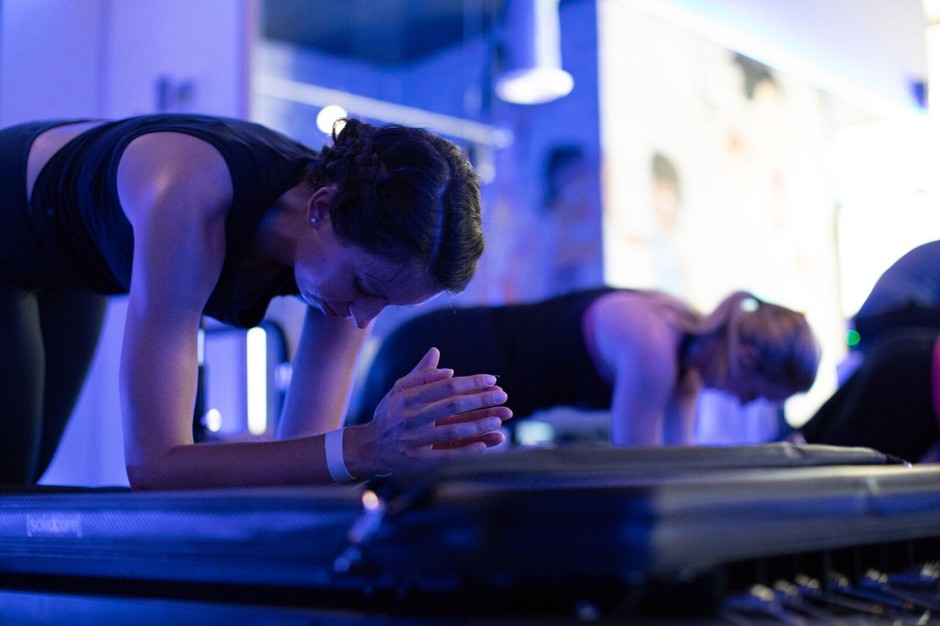 “The world keeps spinning outside, so do yourself a fucking favor and stay here with me,” the [solidcore] instructor yelled, snapping me back to the clubby, blue-lit studio.