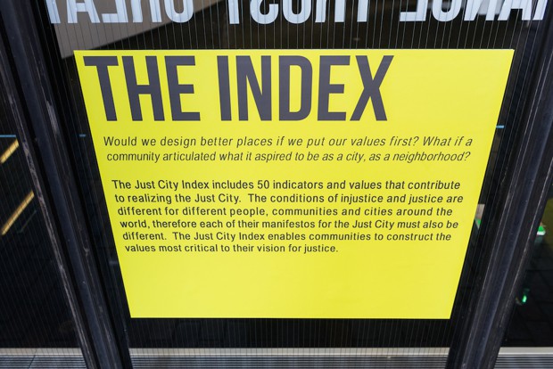 Our intention for the index, which is 50 values that we think promotes greater justice in cities, is as a tool that we want communities and cities to use to craft their own manifesto for what justice means to them. We created this because we often saw that frameworks around sustainability and resiliency usually have a set number of principles that suggest, no matter what context you're in, you have to achieve these principles in order to be resilient or sustainable. We think that a just Boston is different from a justRotterdam, which is different than a just Gary [Indiana], or a just St. Louis, and that given those different contexts, those communities should actually put forward values and principles that are most meaningful to them in the moment of time they're in and given their specific conditions. To date we have used the tool with designers, but it's our intention to use it with a broader set of community neighborhood groups, civic leaders, government, and philanthropy to help create a shared vision for the city, believing that if we start from a values-based approach then we might advance a greater urban justice.