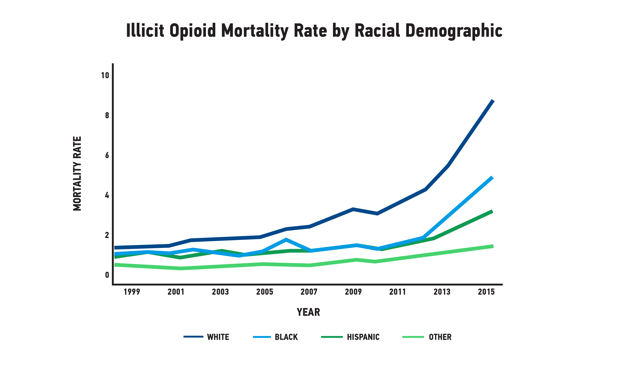 This, the change in the drug environment, is the crux of Rhum’s study. “If economic conditions are the primary driver of the fatal drug epidemic, there would be no reason to expect these shifts in the drug composition to affect the distribution of the demographic groups killed by overdoses,” the study reads. “Instead, individuals self-medicating for their ‘despair’ would simply switch to the newly more available types of drugs.”